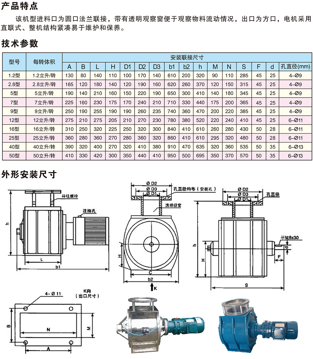 X倒裝式旋轉(zhuǎn)閥,連接排氣風(fēng)機(jī),組成排氣過(guò)濾裝置,作為粉塵收集器使用。也可以作為粉料氣力輸送末端的氣固分離設(shè)備。安裝在料倉(cāng)上部或下部,分離物料,在真空狀態(tài)下排出物料。